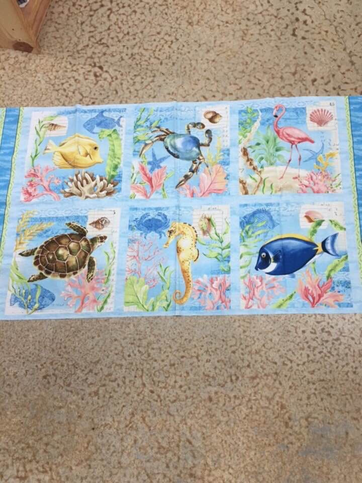 Seaside wonders fabric & pattern size 57 X 76. project bag included.